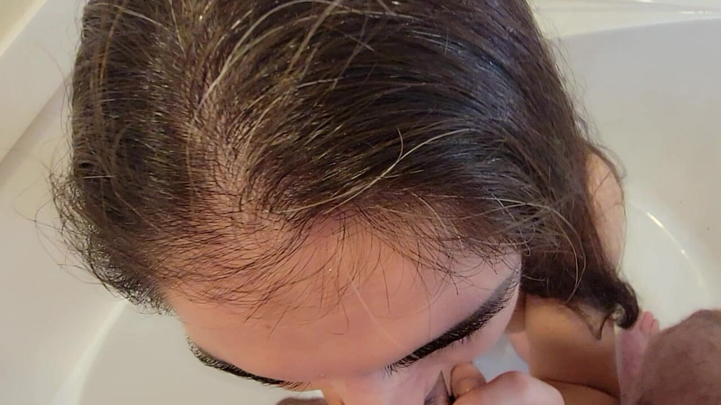 Pov of big tits milf blowjob, piss drinking, cum swallowing